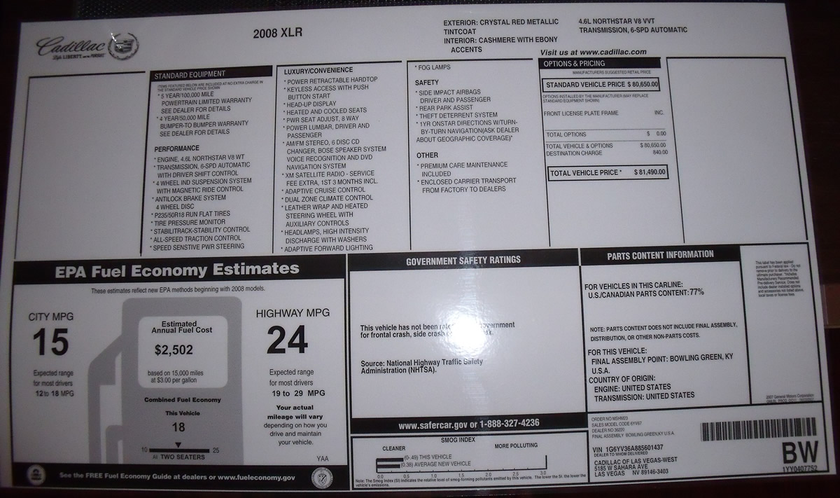 The window sticker below is a facsimile of what the real window sticker might look like. We are not responsible for the accuracy of the numbers and details below.