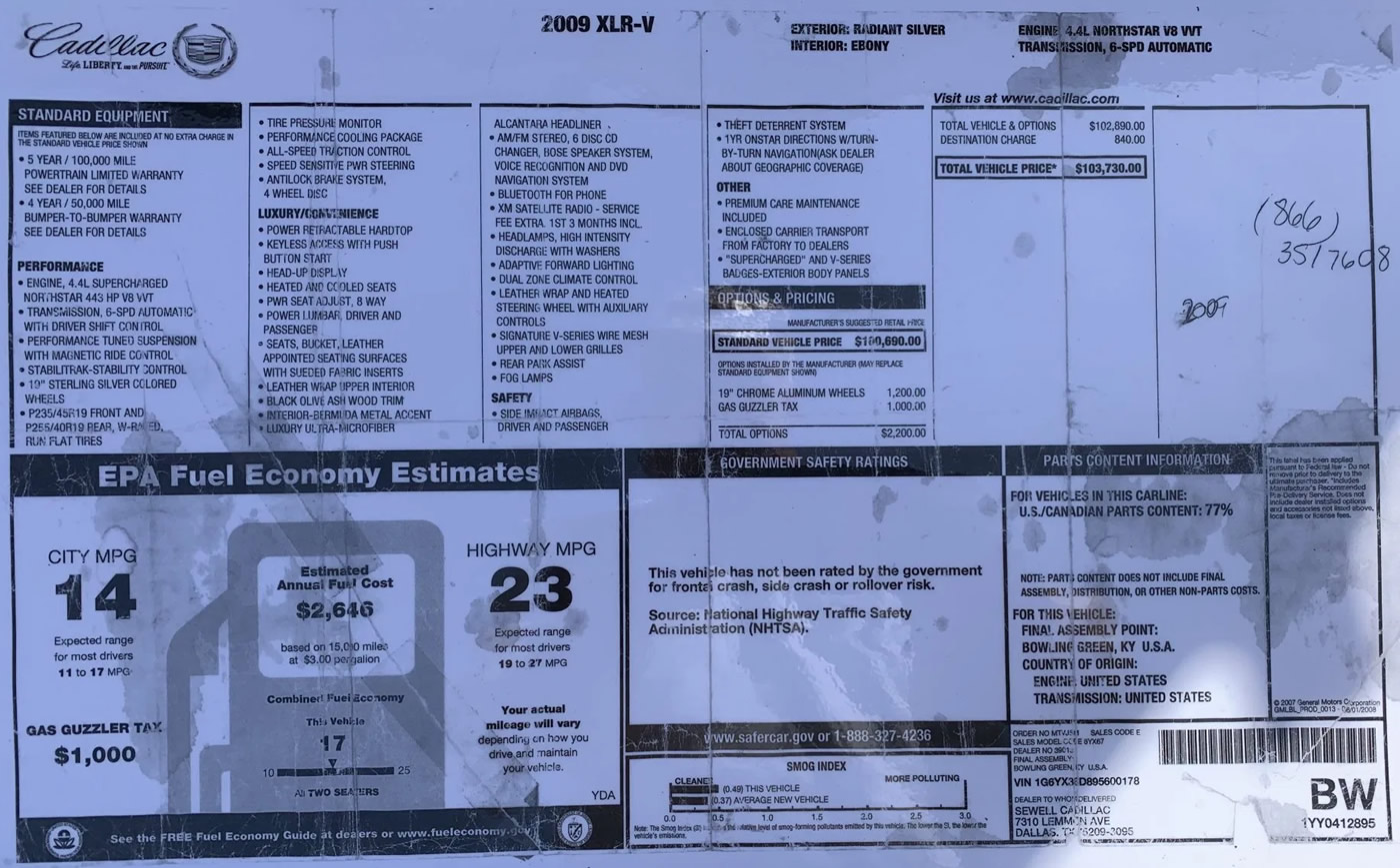 The window sticker below is a facsimile of what the real window sticker might look like. We are not responsible for the accuracy of the numbers and details below.