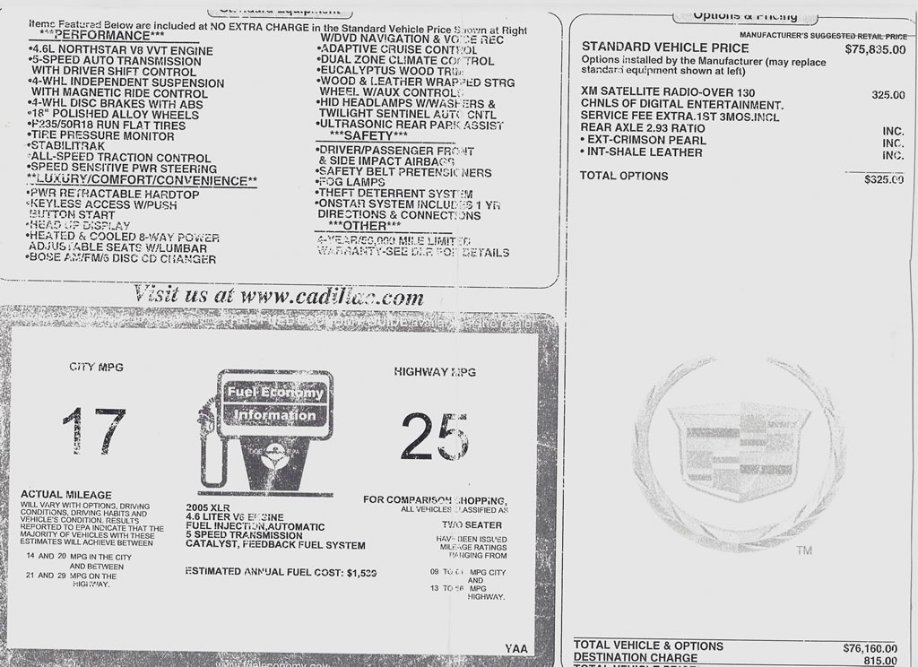 The XLR Net does not have the resources to validate or confirm information provided to and for this Registry. Information provided in this Registry is as accurate as the information provided to us. It is not the intent of the XLR Net to document fraudulent data, nor do we have the expertise to question beyond reason, information provided. The XLR Net does due diligence to accurately document the Cadillac XLRs listed in this Registry, but does not, nor will the XLR Net advise, inspect or arbitrate information provided.