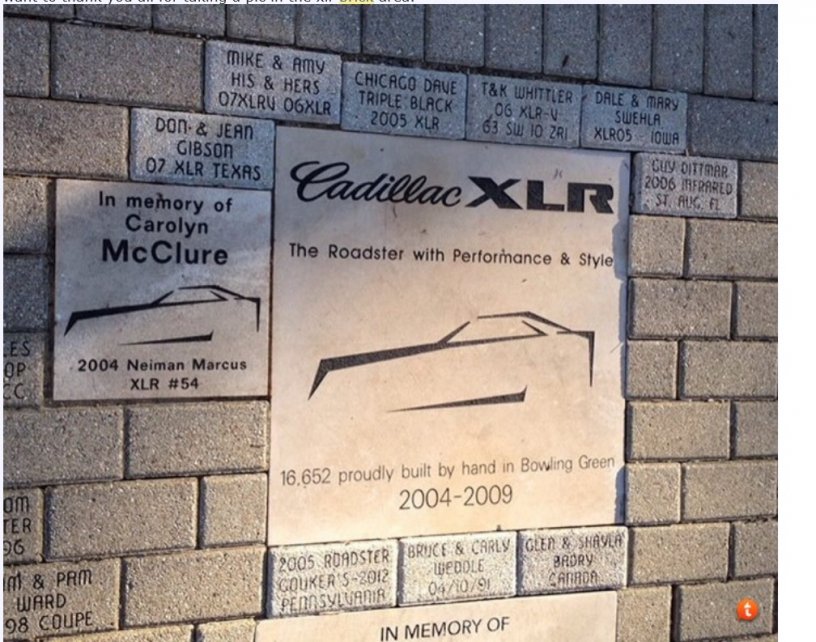 Just thought I would mention to the newer folks here that there is an XLR Brick at the National Corvette Museum. I think it would be a great idea to have more people donate a brick, to not only show your love and support of your XLR - but also support the National Corvette Museum. Consider joining the NCM as a member as well. After all, your XLR was built in Bowling Green. :) Just go to the NCM's website and look under SUPPORT for brick options.