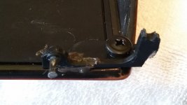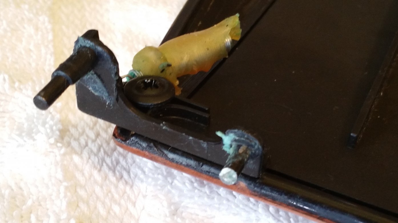 The X is going to the shop tomorrow for the broken shift linkage but thought I'd putter around with the broken console cover hoping I'd figure out how to repair it instead of springing for a replacement console. Anyway, first off was to remove the shift knob and console plate. You have to remove the power supplies which are all quick connect and I was taking the lid/console inside to my work bench. Here's a picture of the rear console cover with pins that have not broken off.