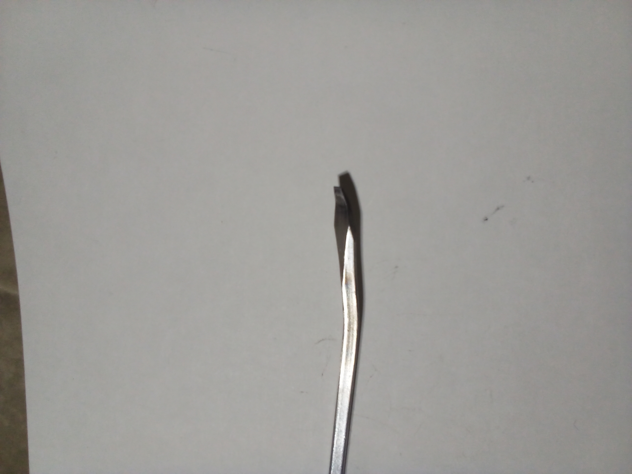 We considered just using a large screwdriver to get in between the vertical plate that the lower ball stud is welded to and the plastic body of the clip and just applying as much pressure as we could to force the clip off of the ball stud but there's barely enough room to get a screwdriver down in the recess and even less room to apply pressure. It's also risky to try to pry the lower clip off without opening the spring clip. I don't know how sturdy the weld is on the ball stud. You may damage or snap the ball stud off of the metal plate instead of popping the plastic strut clip off of the ball stud. If you can't find any other way to remove the lower clip it might be worth a try. But ... the wrecking bar is curved JUST ENOUGH to put some pressure on the dimple on the spring clip to open it AND pop the entire plastic clip body off at the same time.