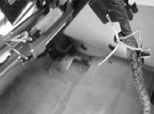 - Install a wire tie, securing the harness to the seat in the original location. Ensure the wire tie is located on the body side of the wire splice.