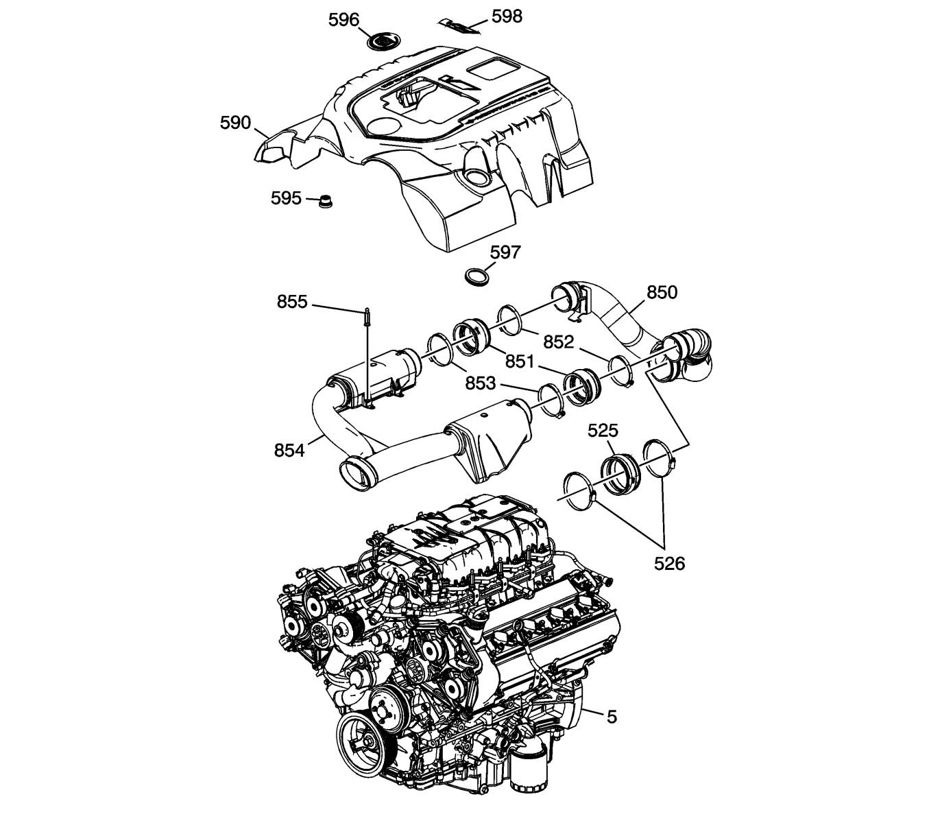 2) Tighten the 526, 852, and 853 supercharger inlet duct clamps to 2.5 NM (20 lb-in).