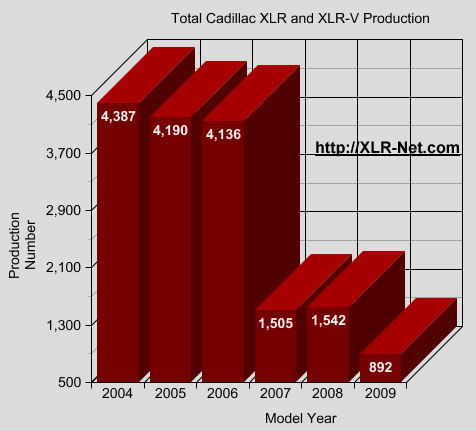 Below is a graphical summary of production numbers for the 2004 - 2009 Cadillac XLR and XLR-V.